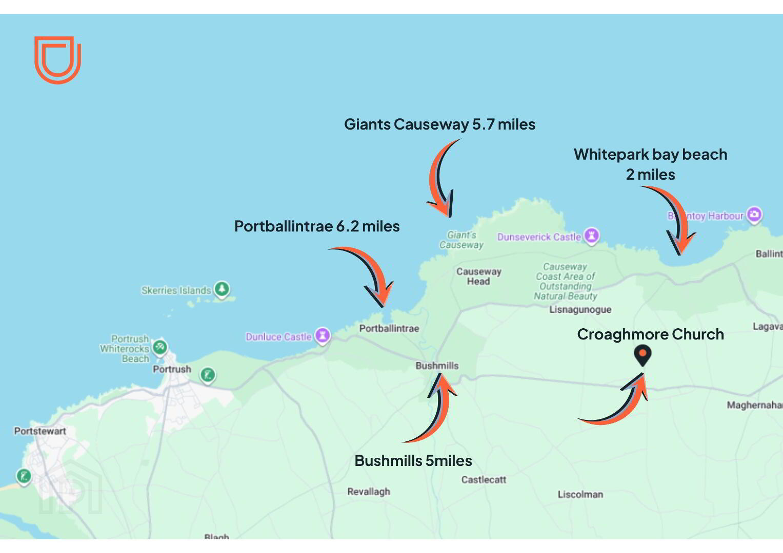 We are delighted to present this truly unique property: a substantial former church set within a generous site, ideally positioned on the picturesque road leading directly to Whitepark Bay Beach. Located approximately 5 miles from Bushmills, this remarkable building offers endless potential for those with vision and creativity.