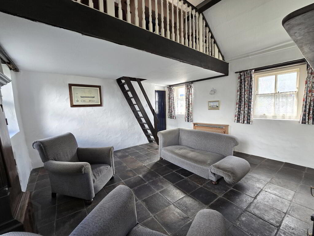 With tiled flooring, feature inglenook and access to mezzanine floor (storage)