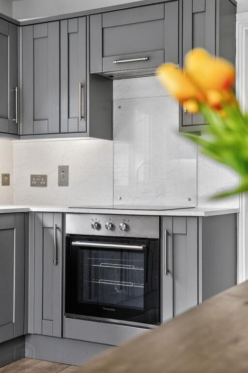 With tiled flooring, eye & low-level units, work surfaces with matching splash back, 1.5 bowl single drainer sink unit with mixer tap, integrated washing machine, integrated freezer, oil fired boiler, external access