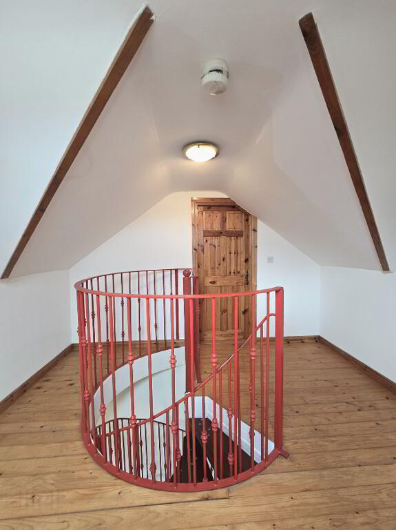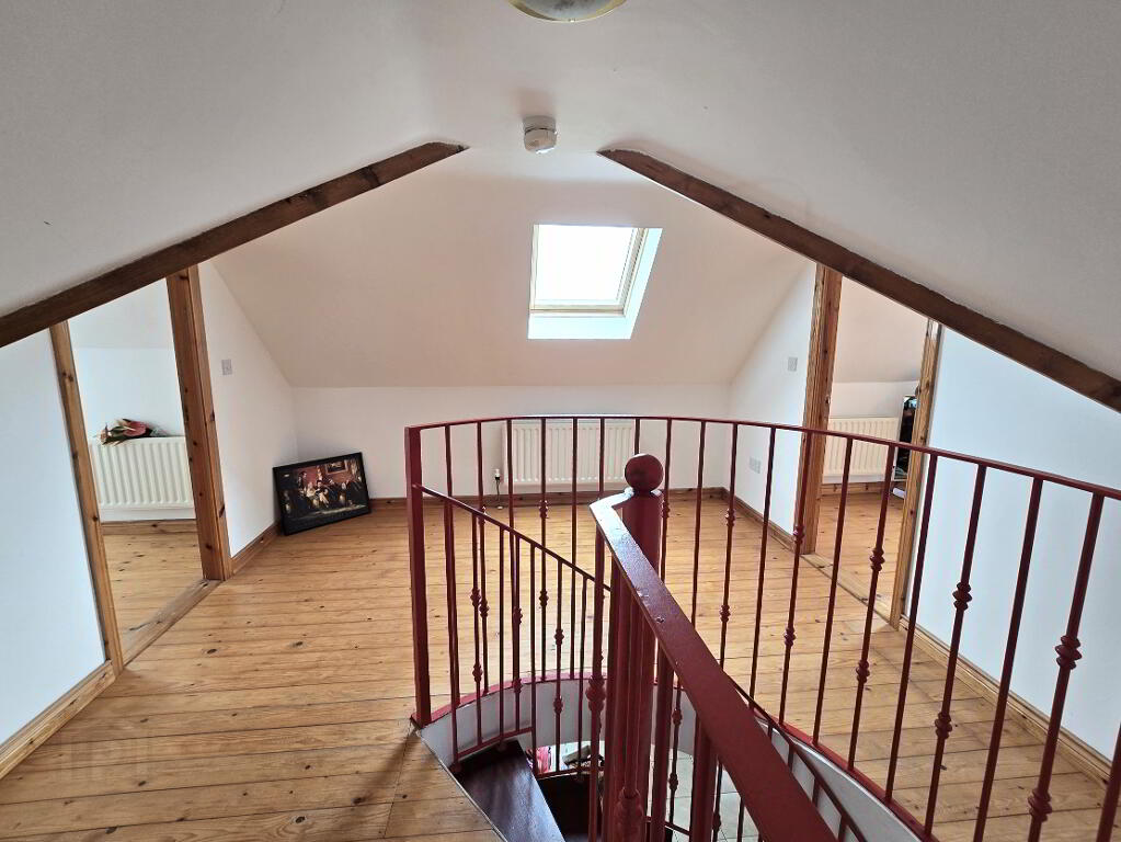 With wooden flooring, access to storage in eves and views towards Knocklayd.