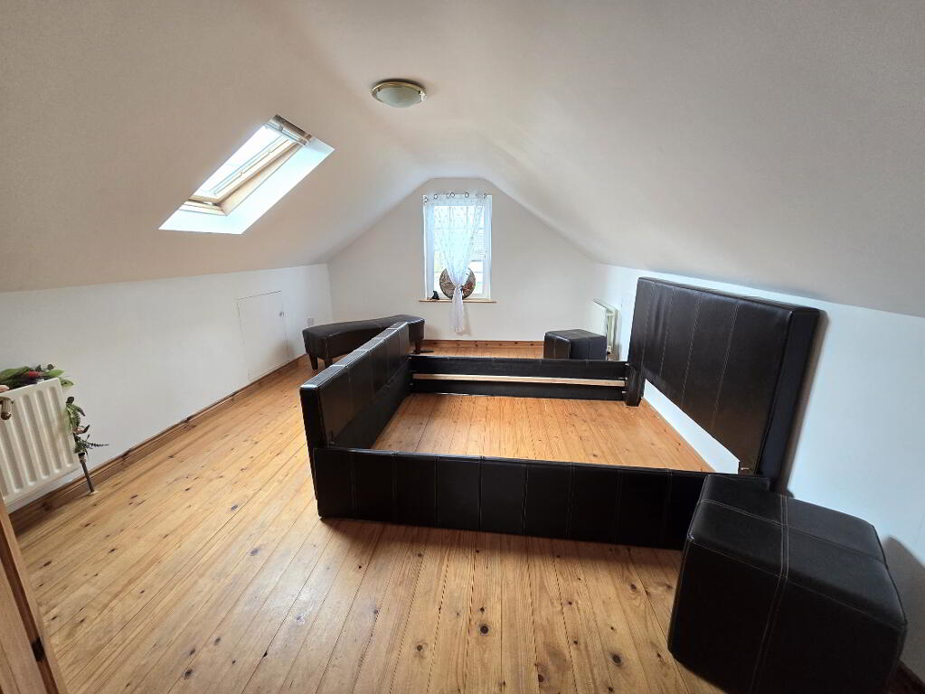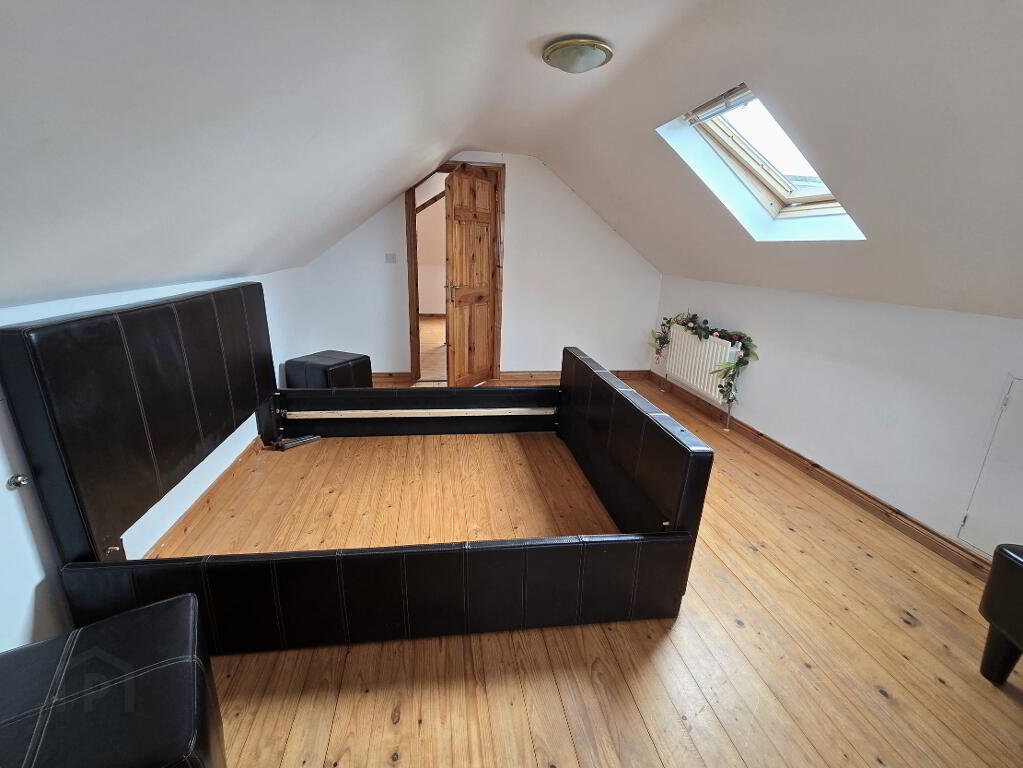 With wooden flooring, access to storage in eves and velux window.
